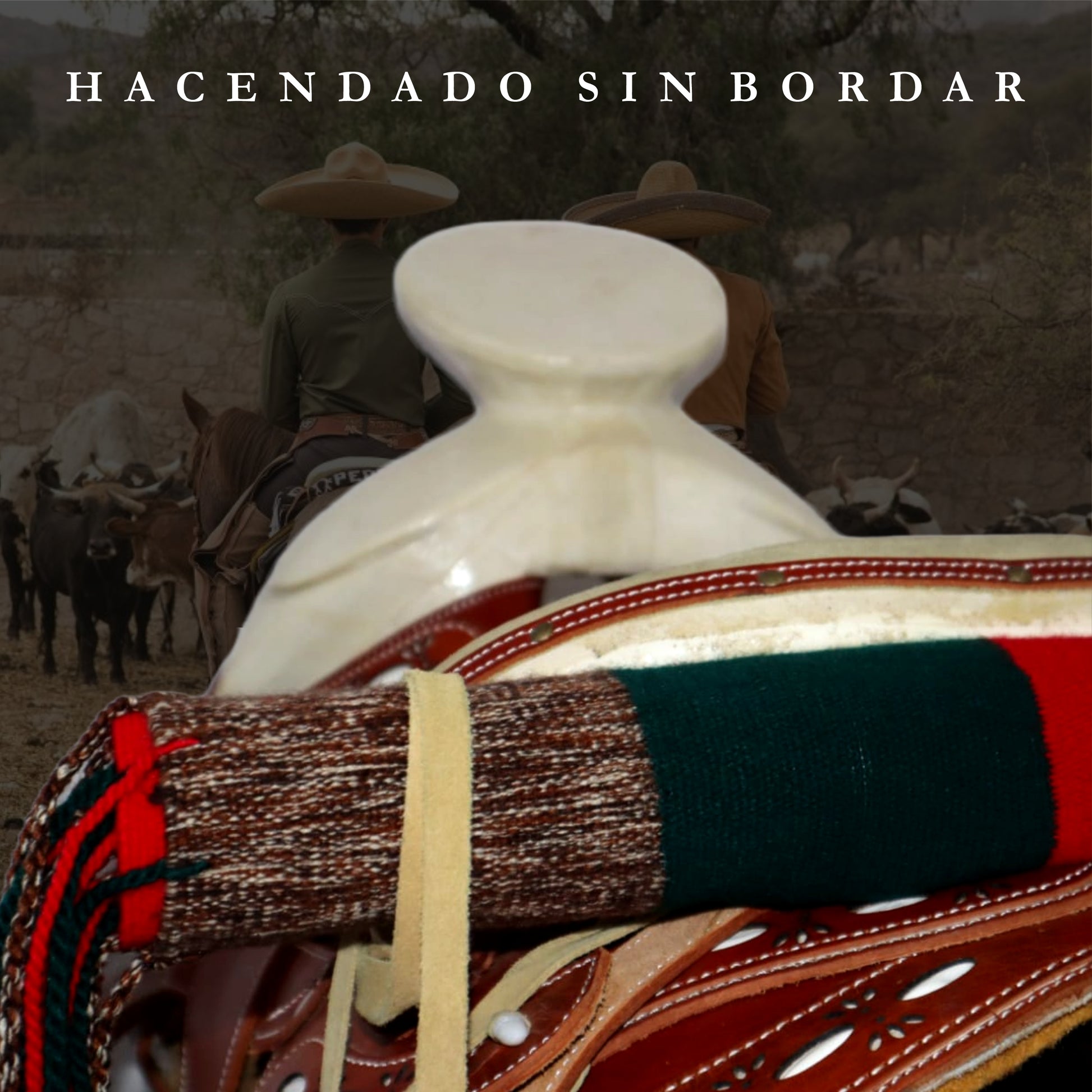 Sarape charro artesanal para sillas de montar, tejido con acrilán de algodón, con detalles en el tejido de cocolitos o grecas charras.
